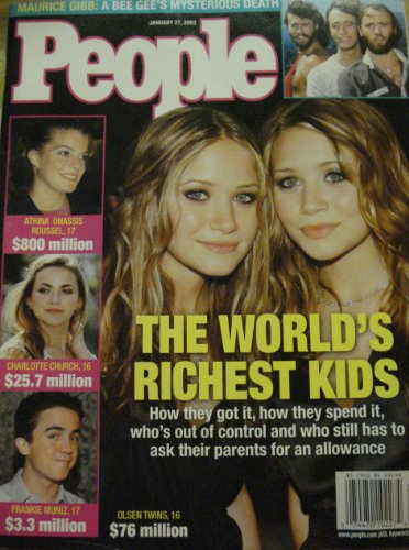 It will believe when you are going to choose this book. This impressive People Magazine Single Issue January 27, 2003 The World's Richest Kids Olsen Twins Frankie Muniz Charlotte Church, Death Of Bee Gee's Mauri book could be read totally in certain time depending on how often you open up and also read them. One to bear in mind is that every book has their very own production to acquire by each reader. So, be the good viewers as well as be a far better individual after reviewing this e-book People Magazine Single Issue January 27, 2003 The World's Richest Kids Olsen Twins Frankie Muniz Charlotte Church, Death Of Bee Gee's Mauri